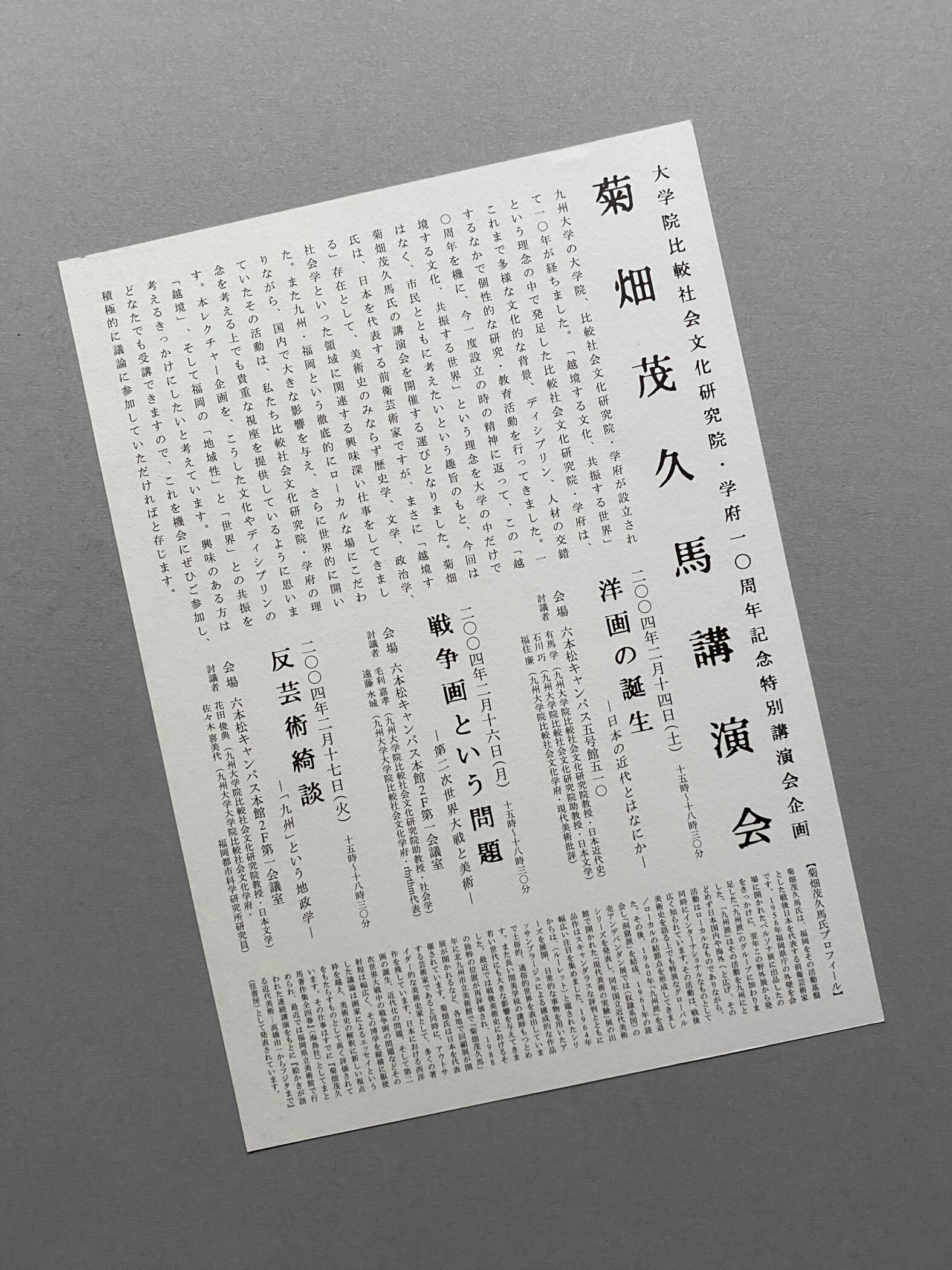 九州大学大学院比較社会文化研究院・学府10周年記念特別講演会企画