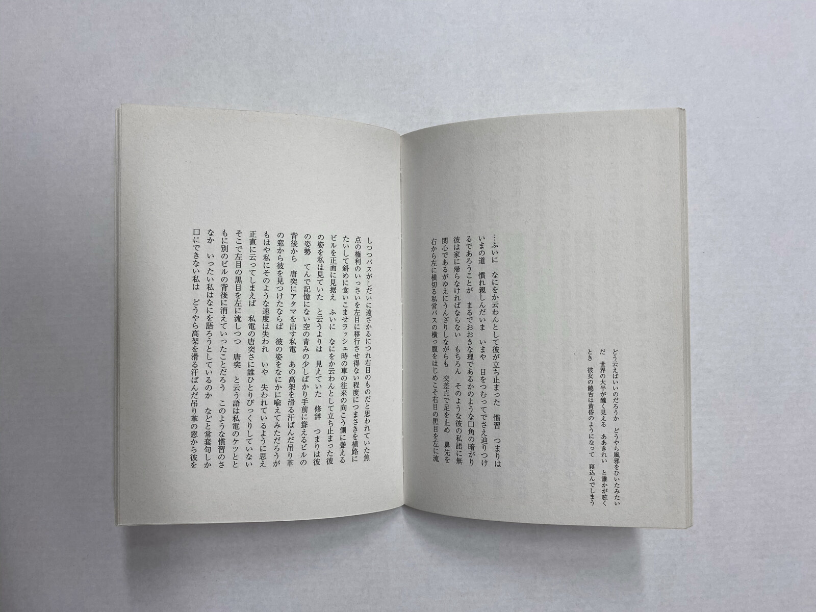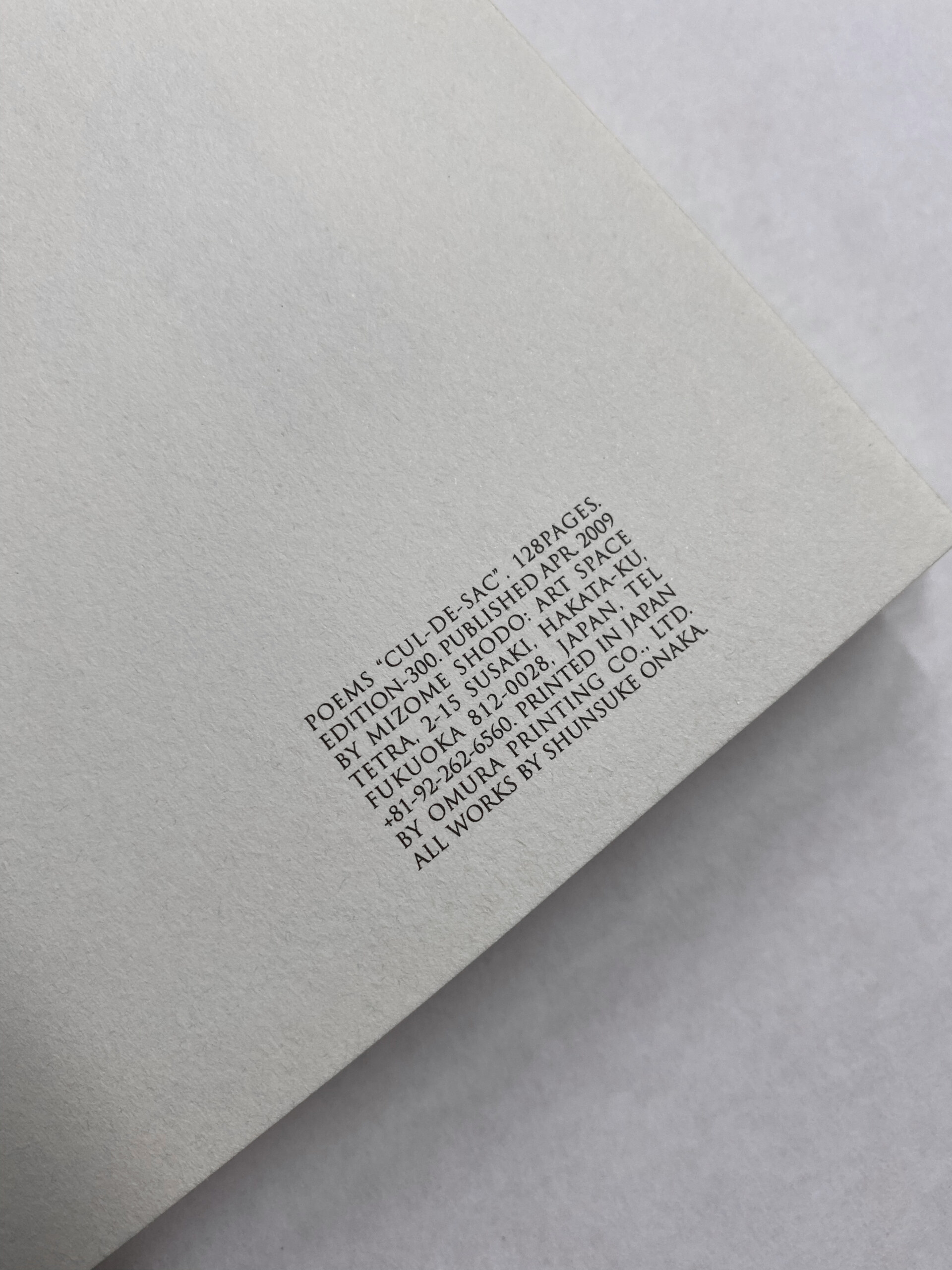 最終的に残ることはなかったが、わたしは尾中俊介の『CUL-DE-SAC』の描く不思議な世界に最も魅せられたことを記しておきたい。「CUL-DE- SAC」というのは袋小路、行き止まりのこと。長篇詩のスタイルを取り、詩集にノンブルはない。装幀も本文の文字表記も凝っていて、大文字の頁と小文字の頁を組み合わせ、語ることの始まりに向けて語る。なんでもない「君」という作者の分身に向けて語る。小さな箱の中に極小の部屋や庭を作り、箱の上下左右から光を照射し、接眼レンズを通して箱の中を覗き込むと、同じ景色が朝の風景に、また夜の風景に変化する、「スコープ」オブジェのような世界だ。長篇を一気に読ませる。力のある作者だと思う。この作者の仕事は必ず開花するだろう。