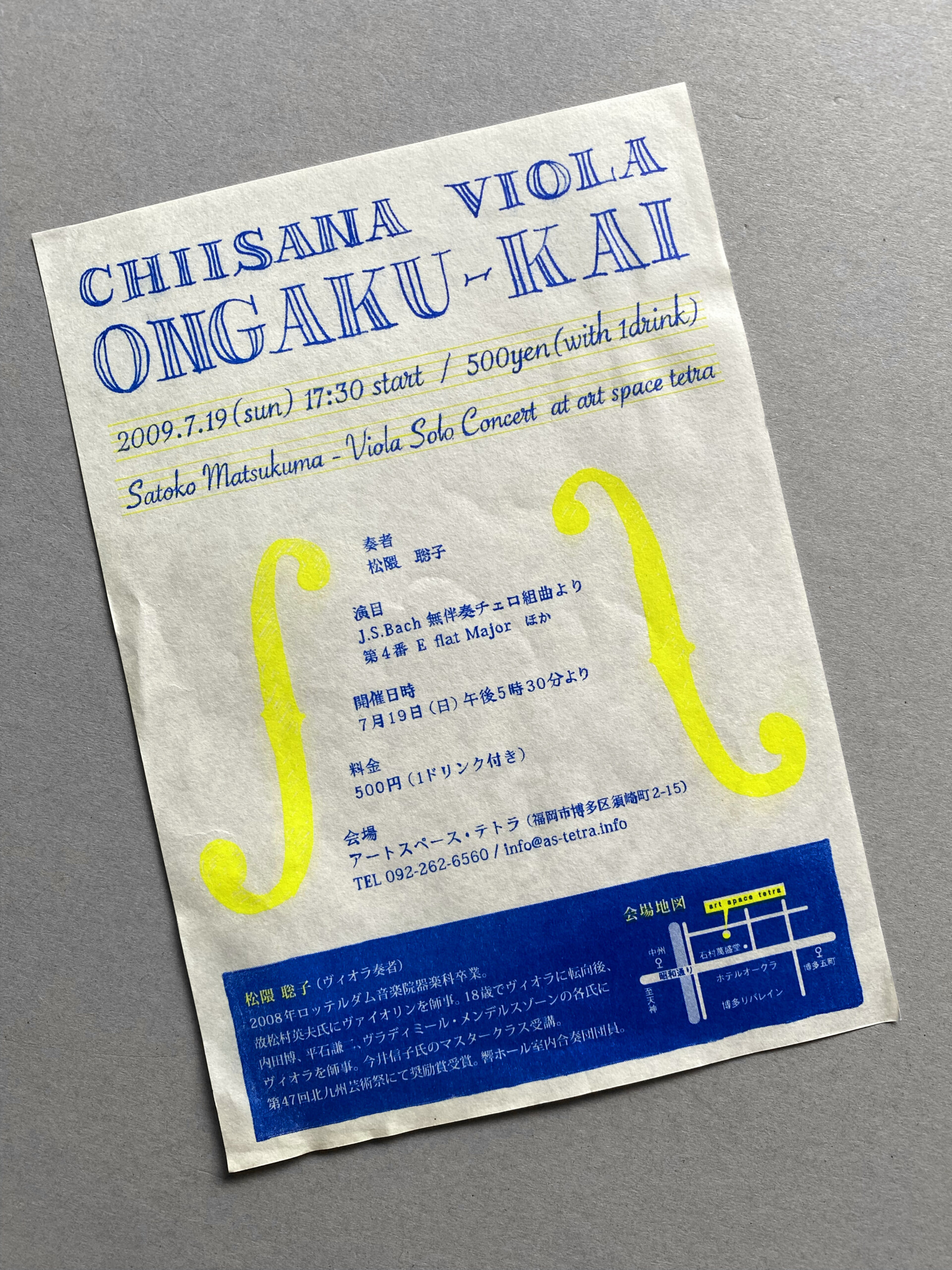 ちいさなビオラ音楽会—日時|2009年7月19日会場|art space tetraデザイン|田中慶二(Calamari Inc.)
