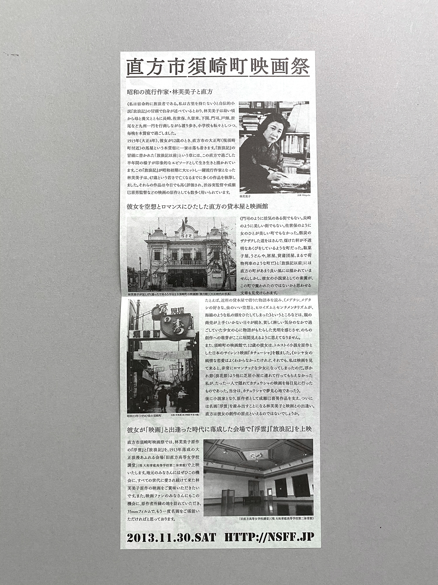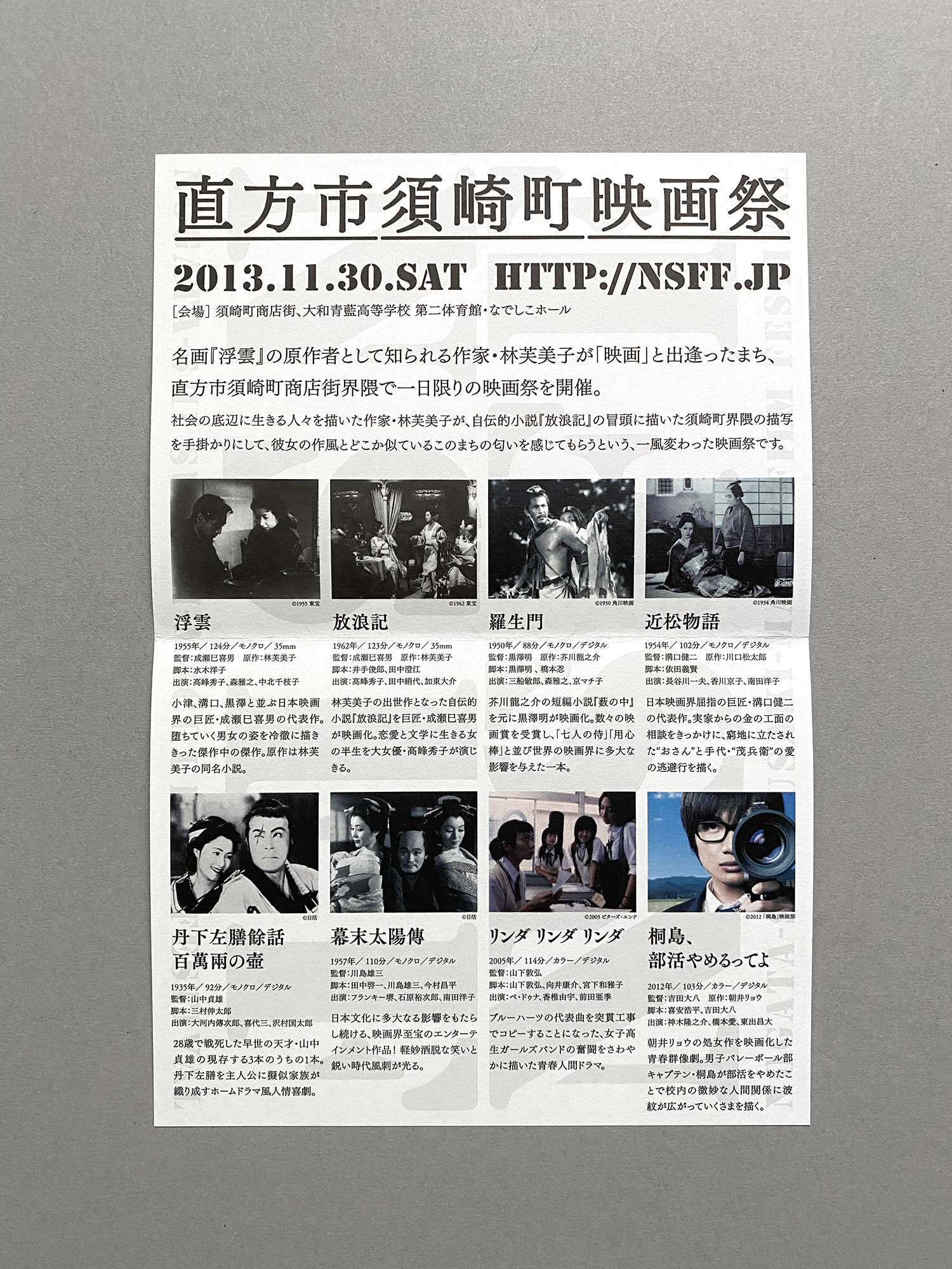 NSFF 直方市須崎町映画祭—期間|2013年11月30日会場|直方市各所デザイン|尾中俊介(Calamari Inc.)