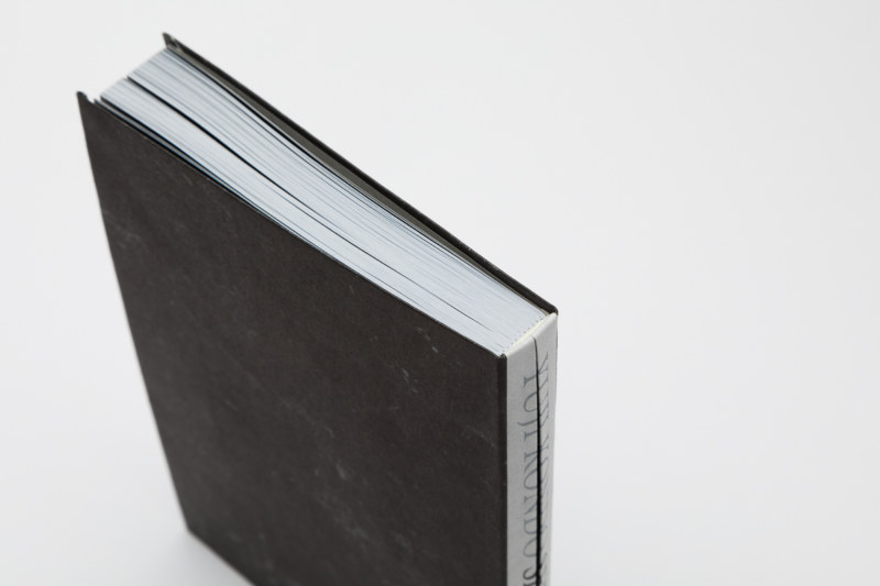 平安・鎌倉彫刻から多くを学んだという彫刻家の作品集ということで考案した、顔が縦に裂け内側から十一面観音が現れる「宝誌和尚立像」から想を得た「裂けた背から新たな背が覗く表紙」。一枚の用紙を折畳むフランス装を基に試作を重ね、通常より多めの折筋を加えて設計、印刷・トムソン抜きしたものを作家とデザイナーが手作業で天地左右を折り返し糊付け、その後、製本職人によって本文をくるみ表紙貼された。図版撮影は作家のアトリエにて、光が入り込まない深夜に行い、微量の光源のみで行った。これは作家が個展などで見せた彫刻展示の方法を援用したもので、暗さの中に浮かび上がる作品の独特な存在感は、写真家・原田要介の技量と直観により質量として計測された。ハイライト部分に網がかかったスミの単色刷りは困難を極めたが何度かの色校正と立ち会いによって、作品の醸す雰囲気に近づけた。(尾中俊介)