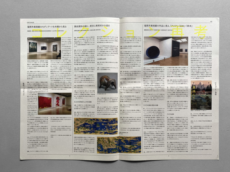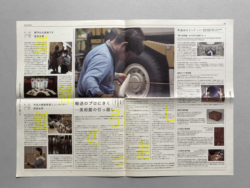 福岡市美術館がリニューアルのため休館中の時期に発行していた季刊誌。普段語られることのない美術館の裏側を毎号特集した擬似タブロイド判。フォントは、タイトルから本文、キャプションに至るまで、筑紫ゴシックPro-Dのみを使用し、下線や文字間、サイズと行間を調整することでそれぞれの役割を担わせている。