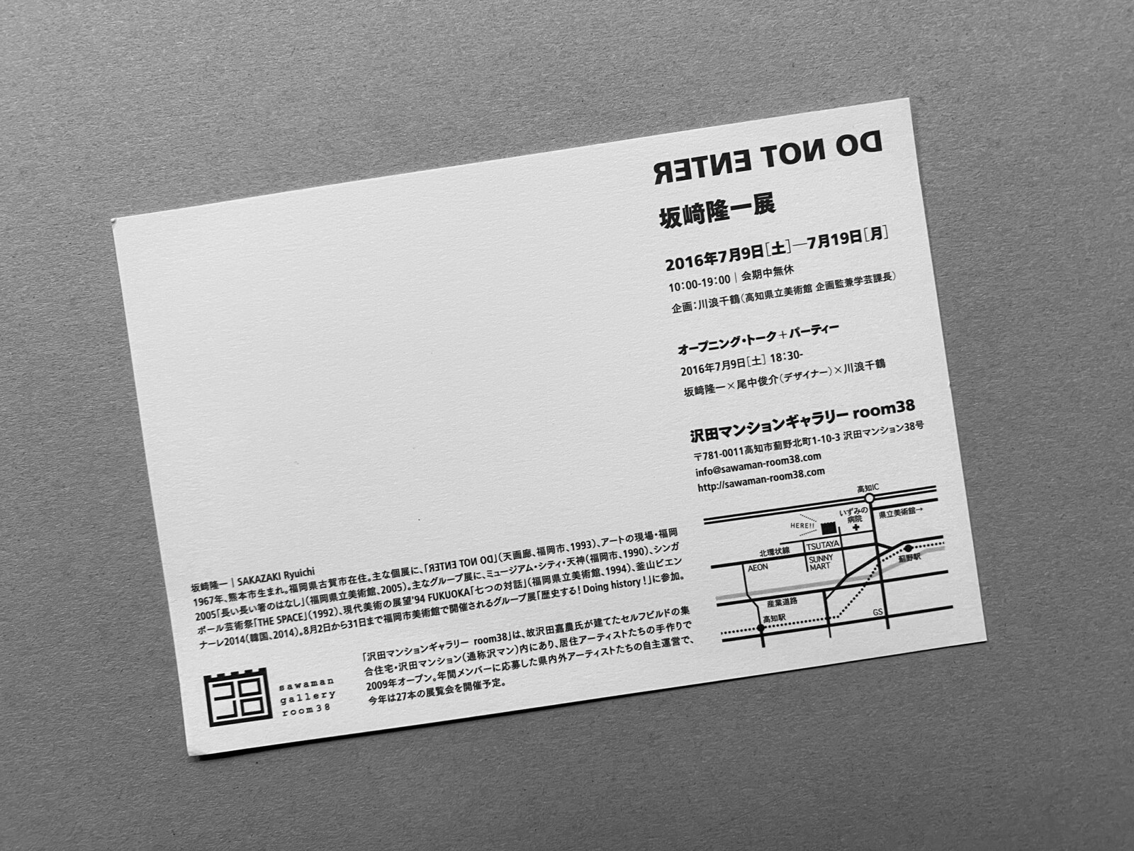 坂﨑隆一DO NOT ENTER—期間|2016年7月9日—19日会場|沢田マンションギャラリーROOM38デザイン|尾中俊介(Calamari Inc.)
