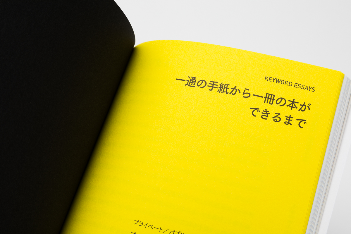 小さなチームで本を制作する場合も、著者↔編集↔デザイナー間での「相互侵犯」というプロセスは有効だ。なぜなら「相互侵犯」とは、突出した才能によらず「未知の領域」へと足を踏み入れるための最善手であり、そのための協力体制であるのだから。その物騒な物言いとは裏腹に、「侵犯」するためには、相互の領域に対する理解と信頼、そして好奇心とが不可欠である。そうでなければ、それは一方的な侵害でしかない。(本文「キーワード・エッセイ」より・尾中俊介)「ブックデザイン」