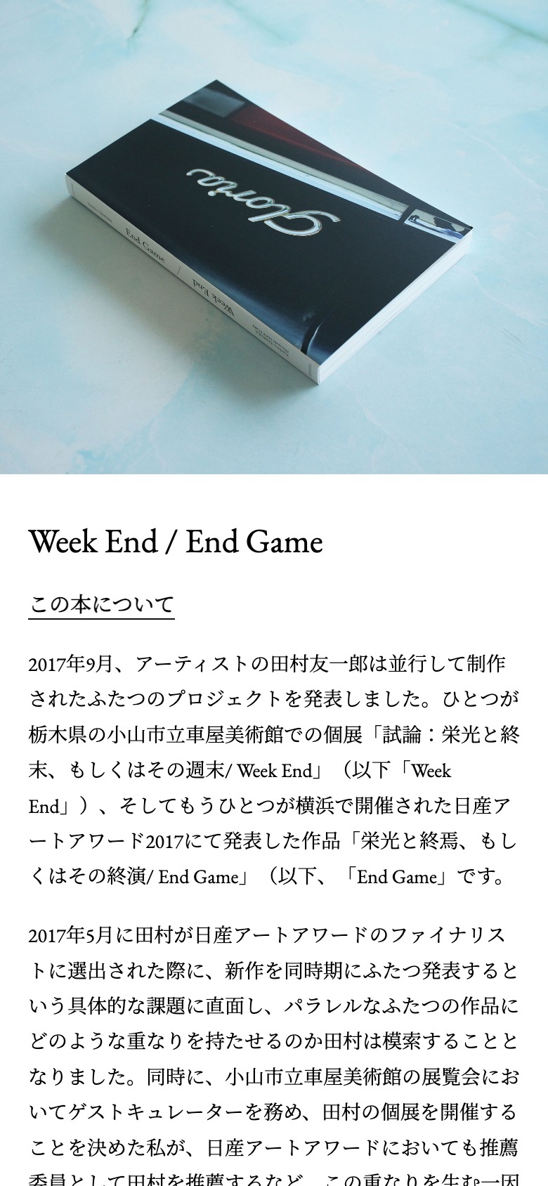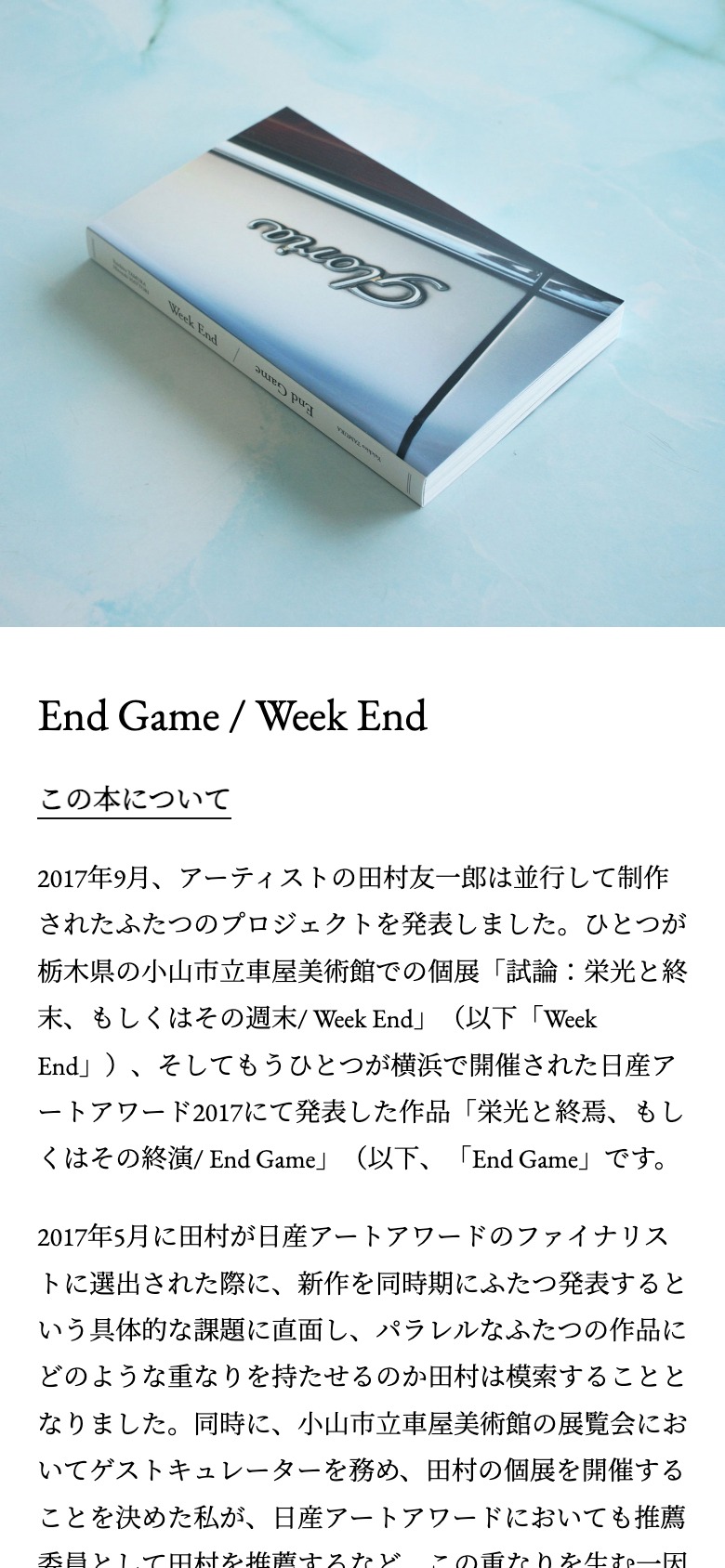 田村友一郎『Week End / End Game』https://weeg.exhb.jp/—サイトデザイン・構築|田中慶二(Calamari Inc.)