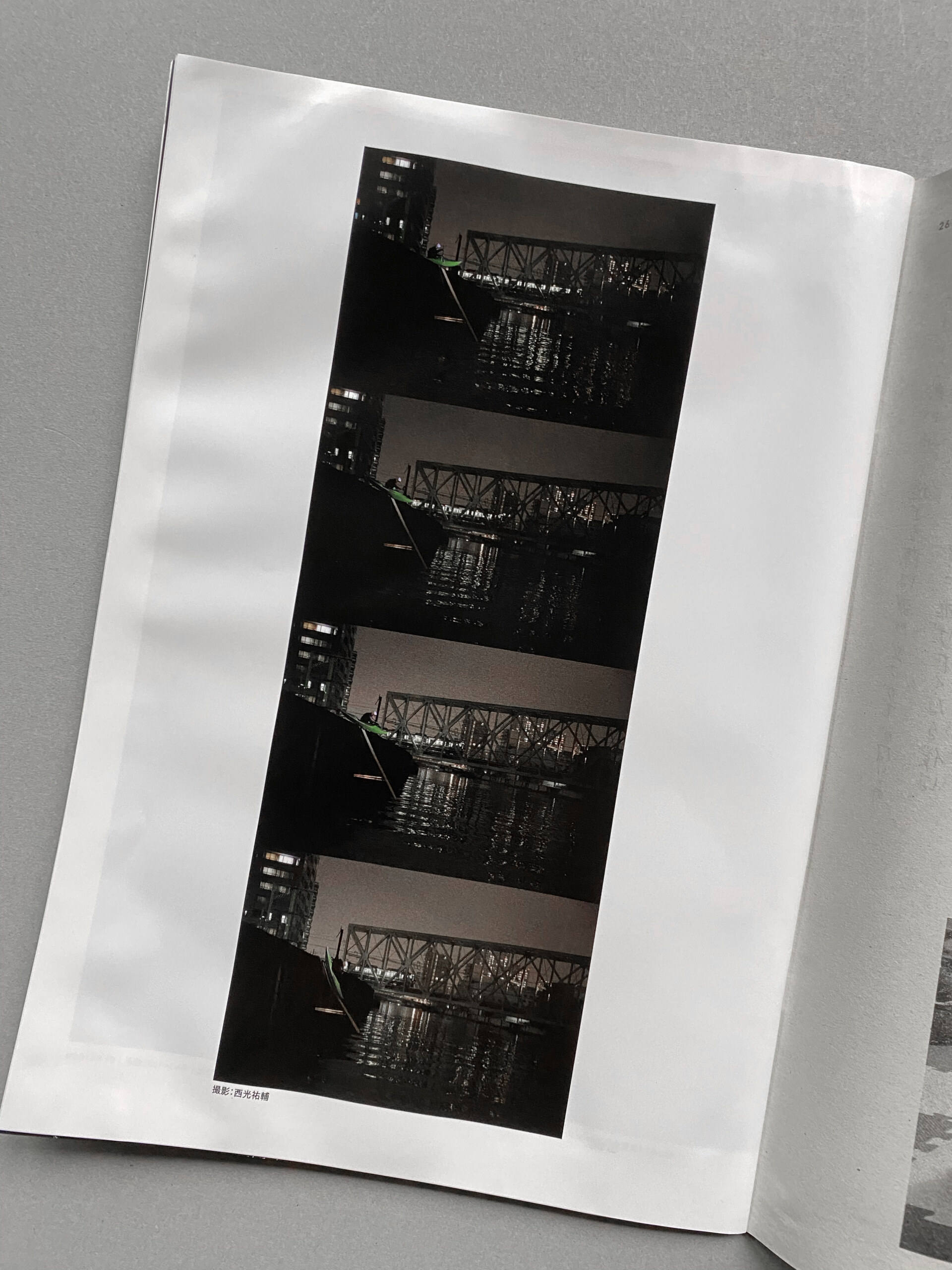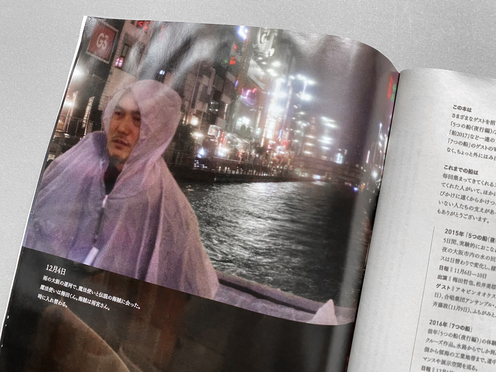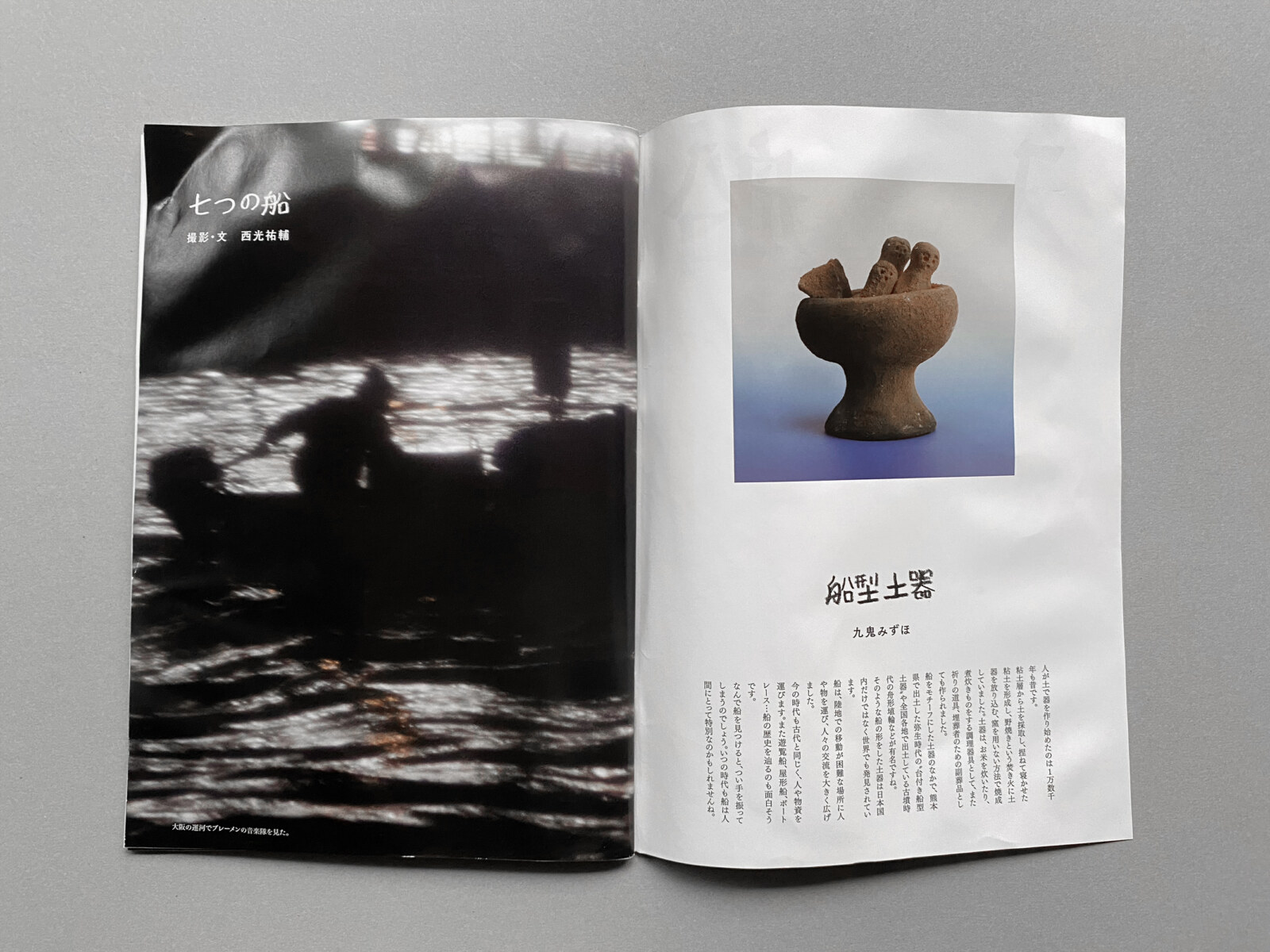 仕様|B5判|中綴じ/リソグラフ・オフセット印刷・(大阪・木津川の水を製本された本の表紙および本文に浸したのち、開いたまま乾燥させたため)折れ、縒れ、破れ、くっつきあり